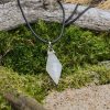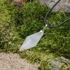 Un colgante de cuarzo transparente (en forma de pirámide) se suele hacer cortando y puliendo una pieza piramidal. Este proceso resalta la belleza natural de la piedra y el resultado es una hermosa pieza de joyería que puede llevarse en una cadena o un cordón alrededor del cuello.