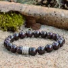 El granate promueve una actitud positiva y dinámica, libera sentimientos reprimidos, falta de confianza, activa los poderes creativos, expande la conciencia, despierta la belleza interior. Durante los cambios o transformaciones, ayuda a mantenerse resistente y responsable.
