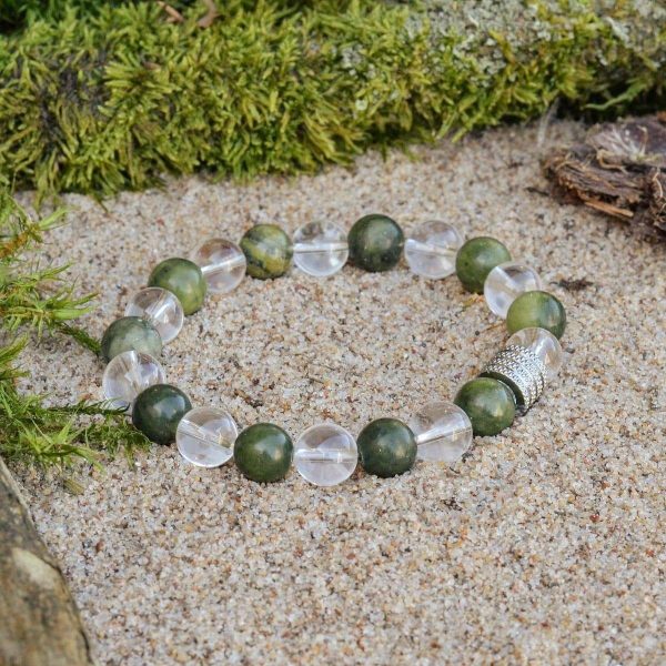Pulsera de Nefrita (Jadeíta) y Cuarzo Cristal de Roca