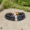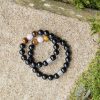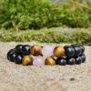 He aquí algunos consejos sobre cómo llevar la pulsera de pareja maciza con obsidiana negra, cuarzo rosa y ojo de tigre.