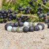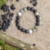 Disfruta del equilibrio y la belleza con la combinación de piedras de lava, riolita, labradorita y amazonita en tu nueva pulsera del zodiaco Sagitario.